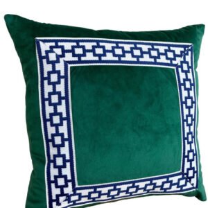 Designer Pillow cover navy blue emerald green trim tape velvet fretwork lumbar bolster throw custom Piping highend decorative chinoiserie