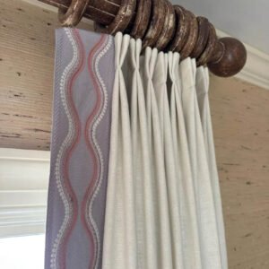 Linen Pinch Pleat drapes with trim tape many fabric colors curtains French pleated fretwork pink rose trimming lining blackout privacy available