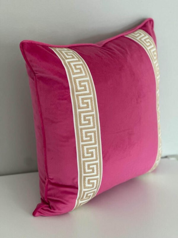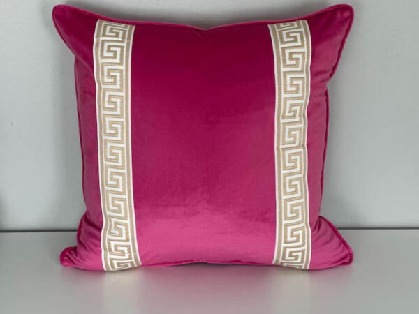 Be the first to review “Designer Pillow cover hot pink Rasberry velvet Beige Greek Key trim tape lumbar bolster throw custom Piping high end decorative chinoiserie”