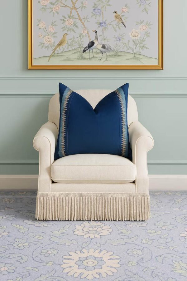 Be the first to review “Designer Pillow cover trim tape navy blue Schumacher velvet Cover navy light blue lumbar bolster throw custom Piping high end decorative”