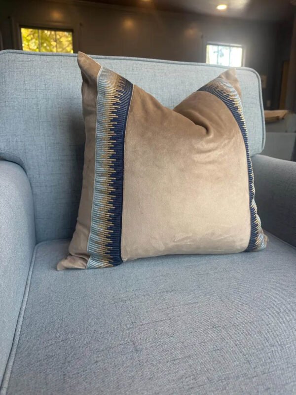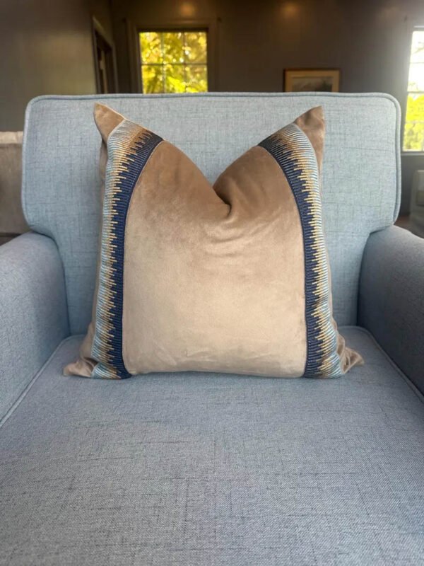 Be the first to review “Designer Pillow cover trim tape taupe Fawn Schumacher velvet Cover navy light blue lumbar bolster throw custom Piping high end decorative”