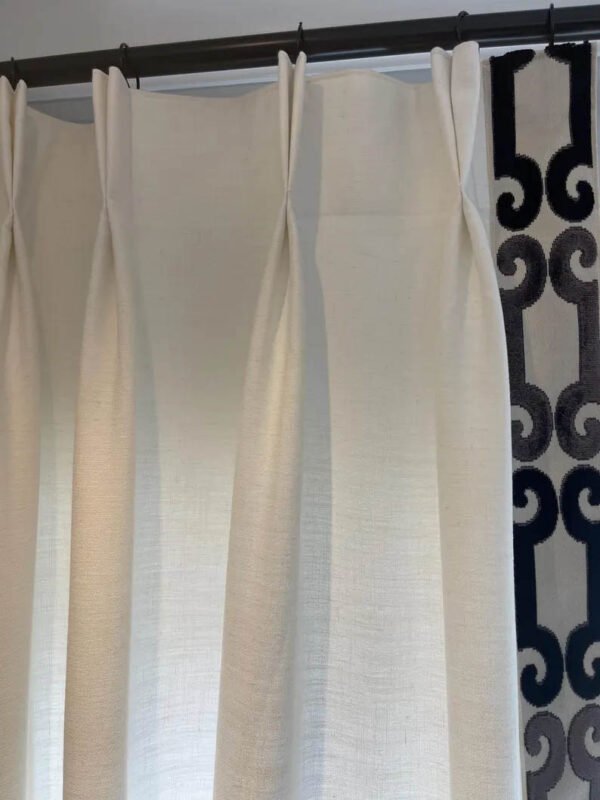 Be the first to review “Linen Pinch Pleat drapes with trim tape many fabric colors curtains French pleated fretwork black trimming lining blackout privacy avail”