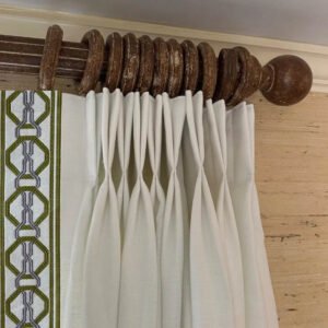 Be the first to review “Linen Pinch Pleat drapes with trim tape many fabric colors curtains French pleated fretwork black trimming lining blackout privacy available”