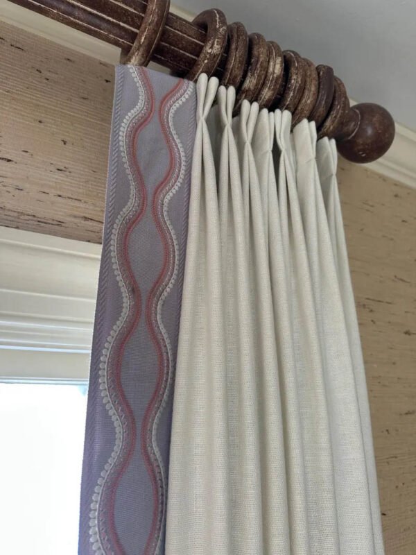 Be the first to review “Linen Pinch Pleat drapes with trim tape many fabric colors curtains French pleated fretwork pink rose trimming lining blackout privacy available”